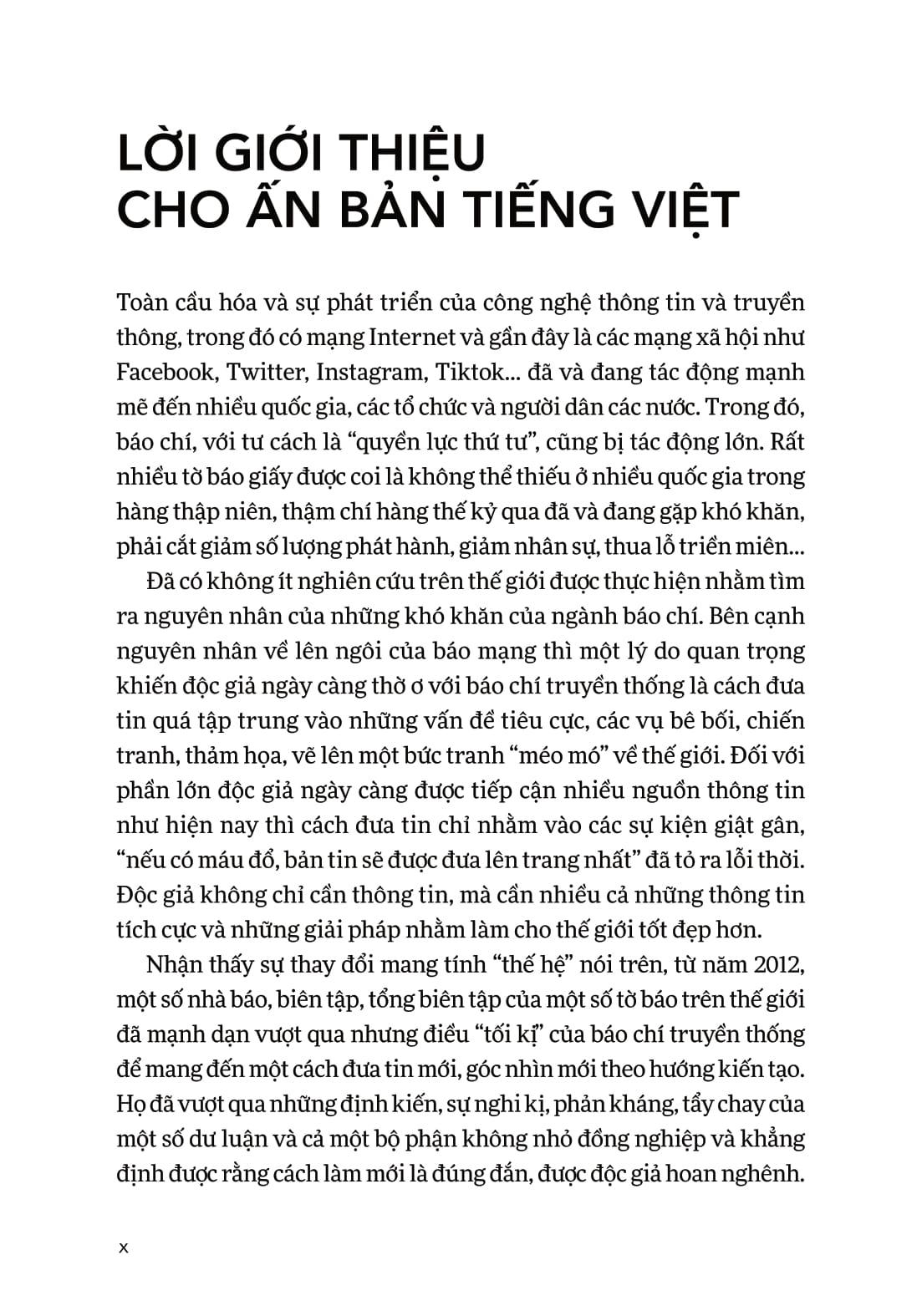 Cuốn sách có ích cho một CÁCH LÀM TRUYỀN THÔNG MỚI, khi truyền thông dễ dàng tràn ngập "tin xấu" (negative) và sự lên ngôi của chủ nghĩa dân tuý (populism) dần dà tạo nên mối hoài nghi ngày càng lớn trong dư luận.