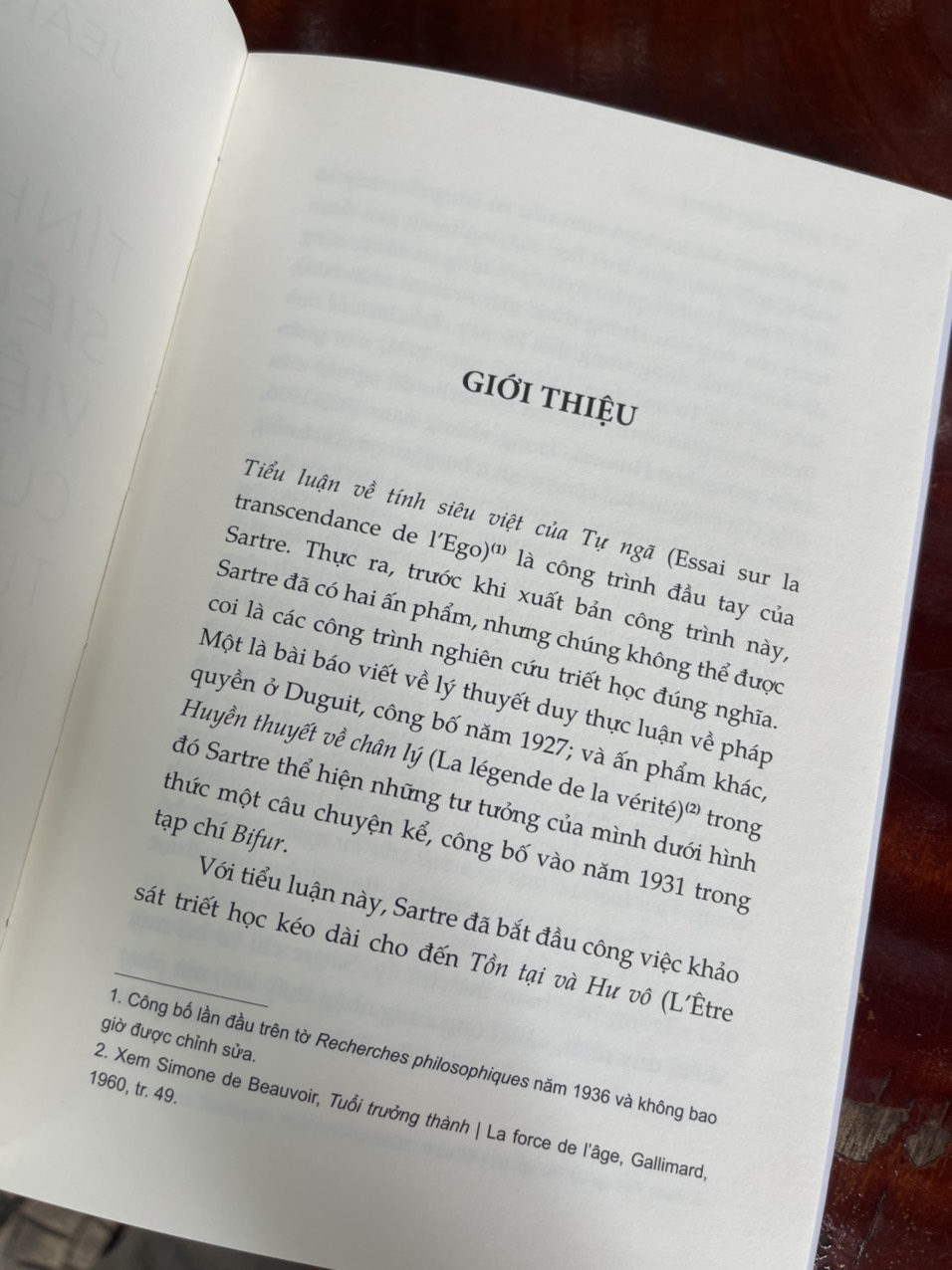 Tính siêu việt của Tự ngã - Phác thảo một lối mô tả hiện tượng học được viết vào năm 1934 và công bố lần đầu vào năm 1936, là thành quả đầu tay của