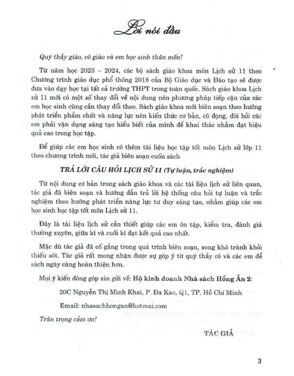 Trả Lời Câu Hỏi Lịch Sử 11 - Tự Luận Và Trắc Nghiệm (Dùng Chung Cho Các Bộ SGK Hiện Hành)