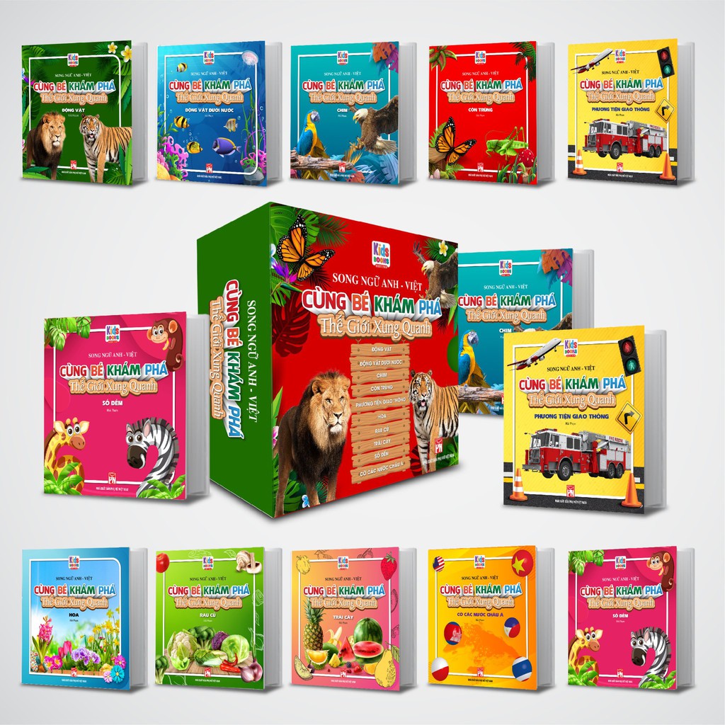 tạo. Bộ sách này gồm 10 cuốn với các chủ đề sau: Số đếm, Động vật dưới nước, chim, Động vật, Cờ các nước Châu Á, Côn trùng, Rau củ, Trái