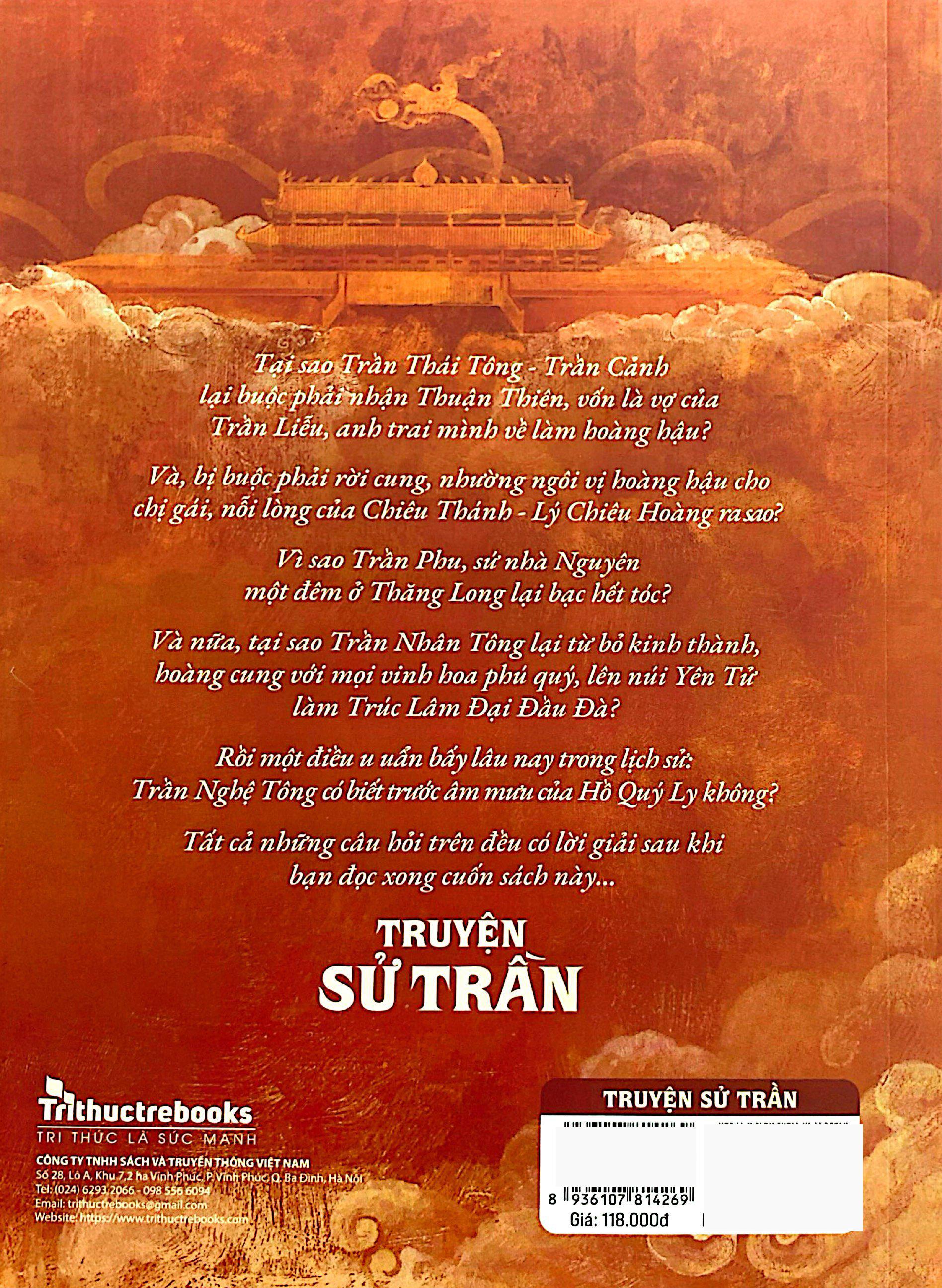 Chúng tôi trân trọng giới thiệu tập truyện ngắn Truyện sử Trần, một tác phẩm độc đáo kết hợp giữa các yếu tố lịch sử và văn học. Cuốn sách là một tuyển tập truyện ngắn lấy cảm hứng từ những giai đoạn quan trọng trong triều đại nhà Trần - một trong những thời kỳ vàng son của lịch sử Việt Nam. Thông qua các tác phẩm này, tác giả không chỉ tái hiện các sự kiện nổi bật mà còn đi sâu vào tâm lý, nội tâm của các nhân vật lịch sử, tạo nên một bức tranh sống động, đầy cảm xúc.
