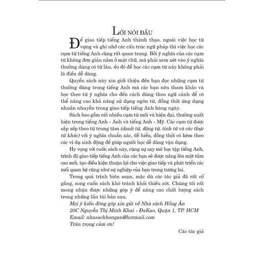Quyển sách này xin giới thiệu đến bạn đọc những cụm từ thường dùng trong tiếng Anh mà các bạn nên tham khảo và học theo từ ý nghĩa cho đến cách dùng theo ngữ cảnh để có thể nâng cao khả năng sử dụng ngôn từ, đồng thời ứng dụng nhuần nhuyễn trong giao tiếp tiếng Anh hàng ngày.