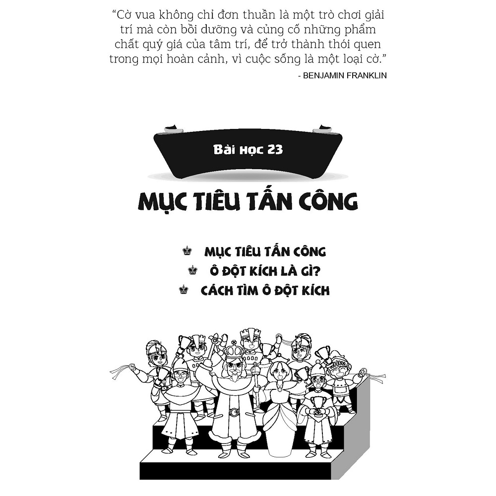 • Sách có nhiều hình ảnh minh hoạ ngộ nghĩnh, các trò chơi vui vẻ, tích hợp với cờ vua, minigame, các câu chuyện cờ vua, danh ngôn tạo động lực học tập.