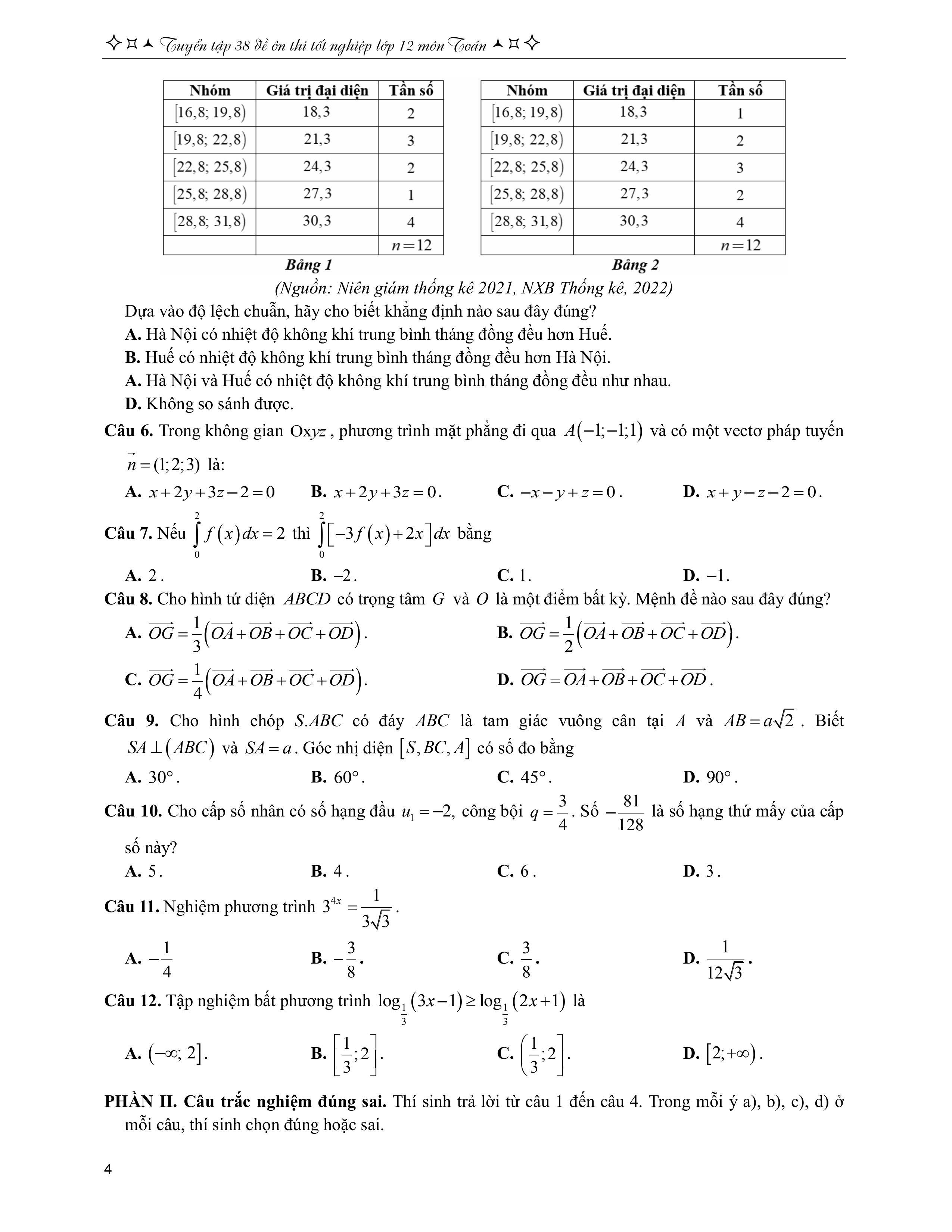 Phần II. Trắc nghiệm đúng sai.