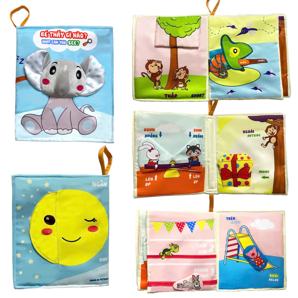 Sách vải cho bé PiPoVietnam - Bé thấy gì nào - Giúp bé học các kỹ năng thông qua phép so sánh Sách vải cho bé có thể giặt được nhiều lần, thoải mái cho