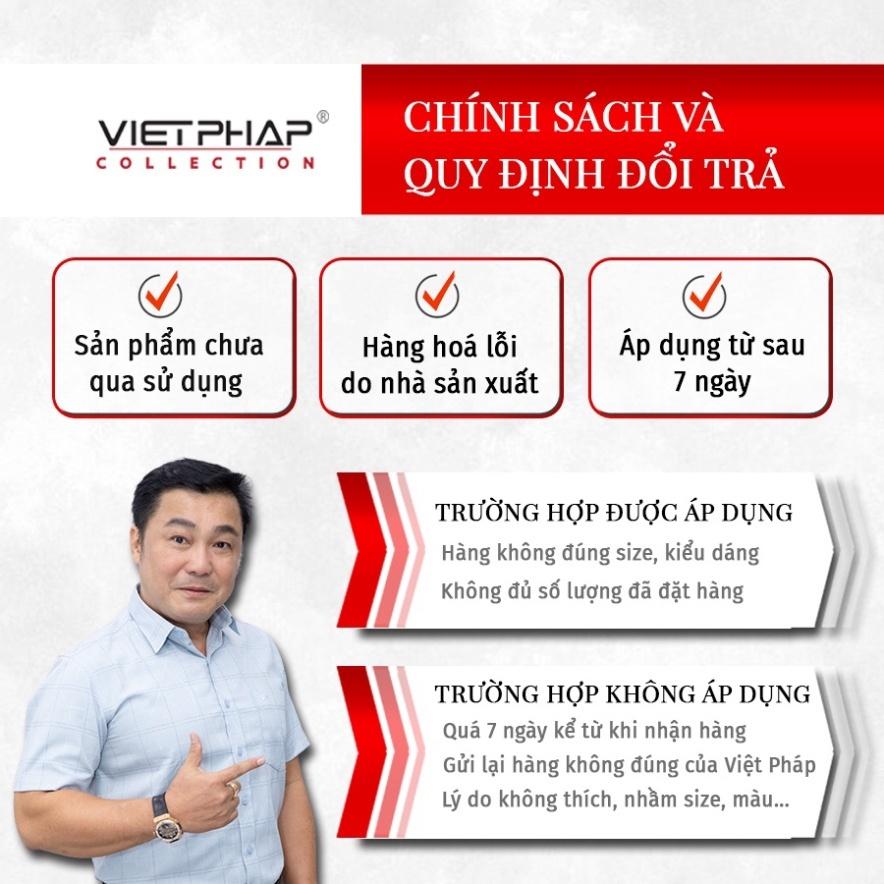 - Đổi trả hàng theo đúng quy định của Tiki VietPhap Collection Sản xuất tại: CTY TNHH May Mặc – Thời Trang Việt Pháp Cùng bạn làm nên phong cách! LƯU Ý: - Bảng size chart chỉ mang tính chất tham khảo, tùy thuộc vào số đo cơ thể mỗi người và chất liệu vải khác nhau sẽ có sự chênh lệch nhất định từ 1 - 2cm.
