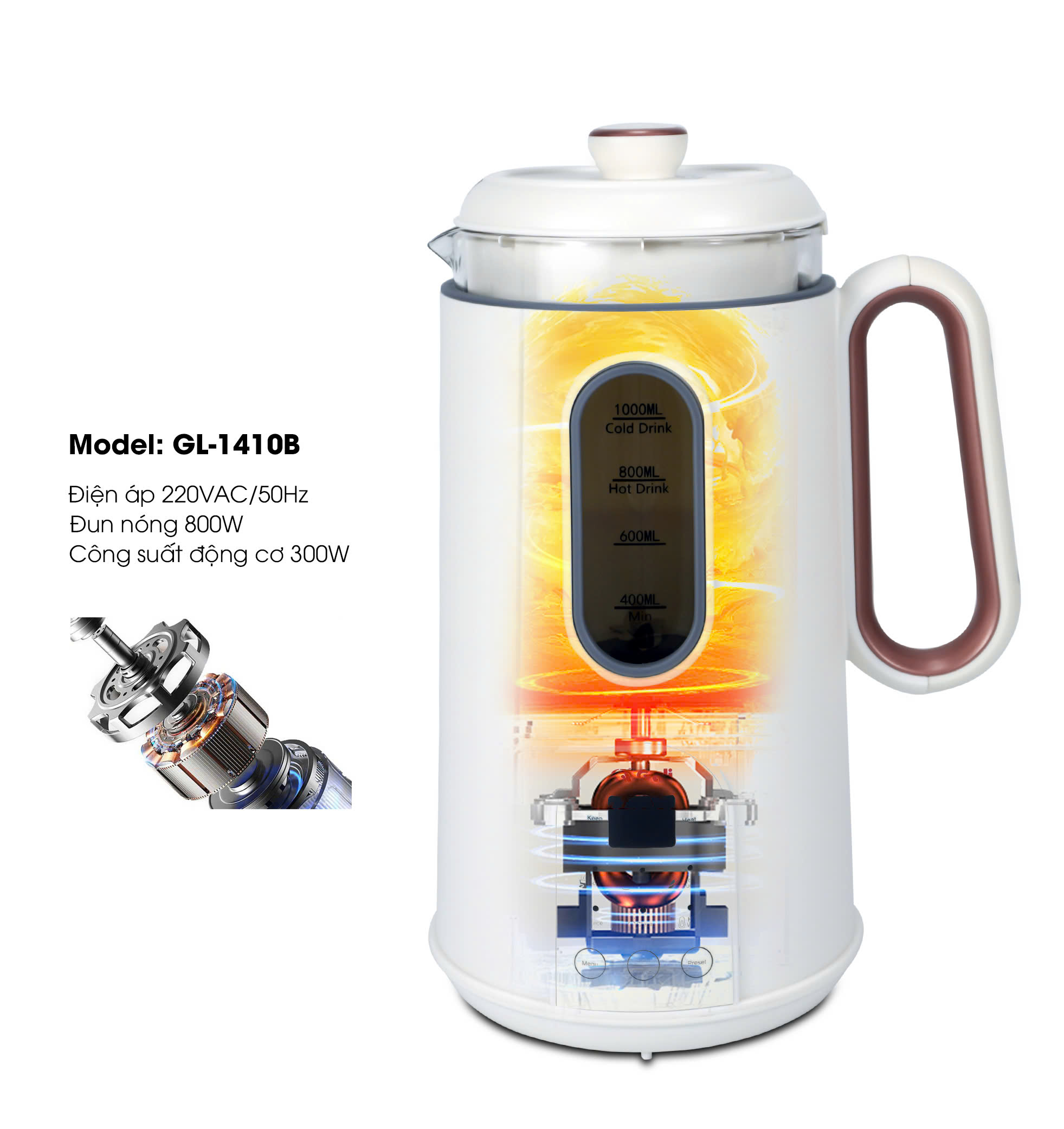 [SẴN HÀNG] Máy làm sữa hạt Gali GL-1410B. Hàng nhập khẩu chất lượng cao, bảo hành 24 tháng.