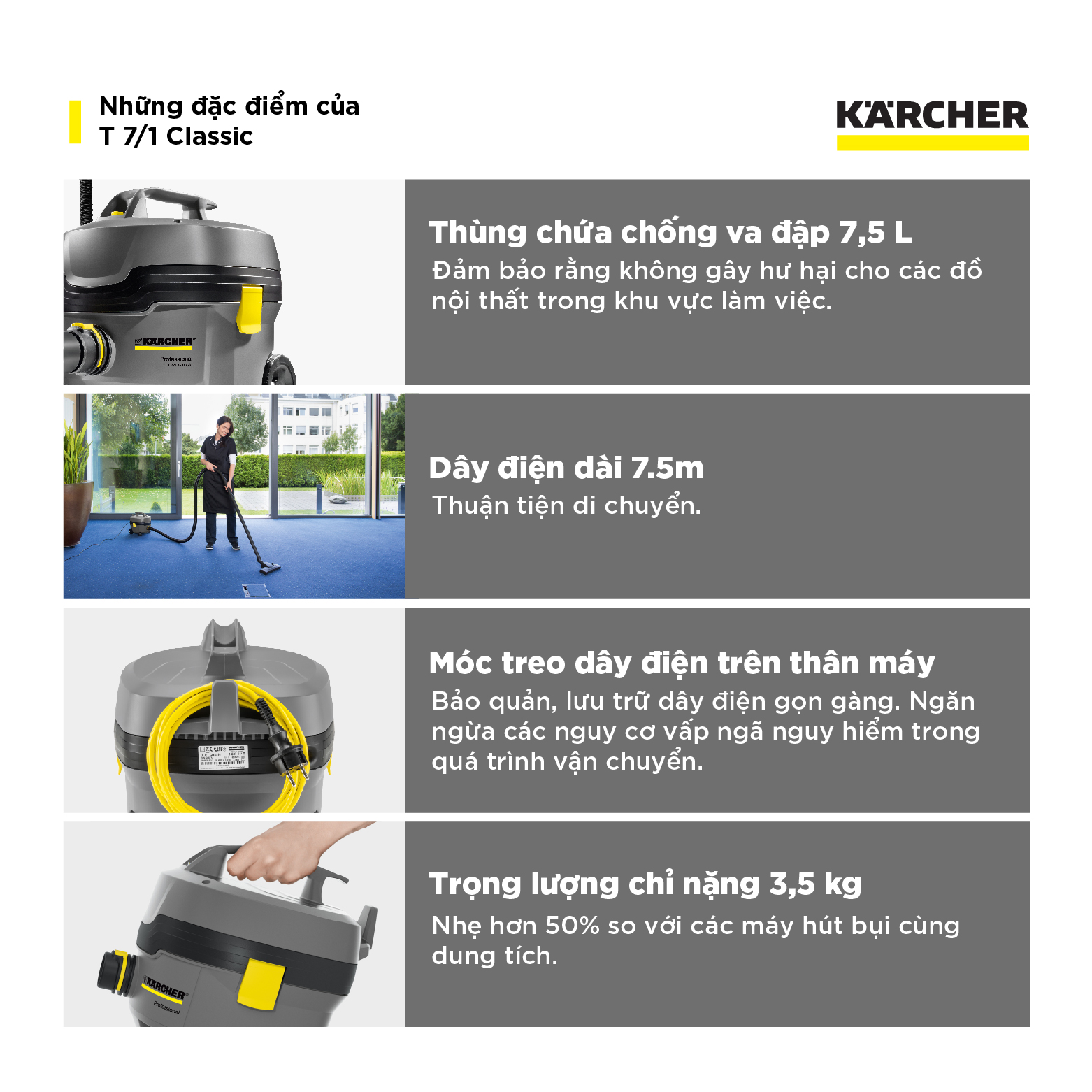 ✨[Sản xuất Châu Âu] Máy hút bụi khô công nghiệp Karcher T 7/1 Classic - Hàng chính hãng