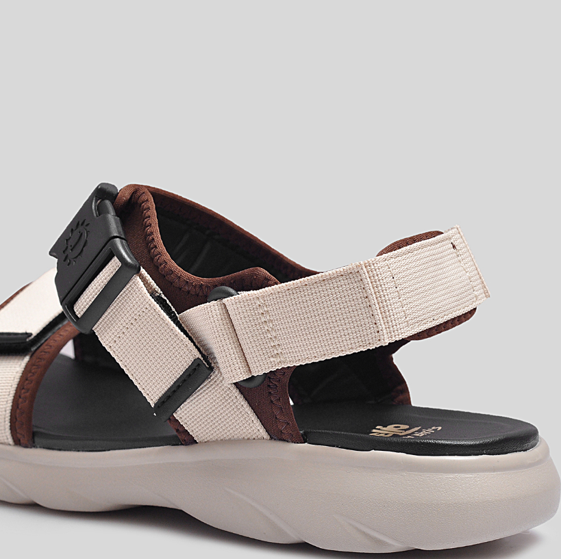 Phần quai bằng vải dù bản to, có khóa bấm hỗ trợ tháo nhanh – gọn – chắc. Thiết kế ôm vừa bàn chân, không gây cấn hoặc hằn đau khi đi lâu. Đế IP đúc nguyên khối màu kem sáng, êm và bám tốt khi di chuyển.
