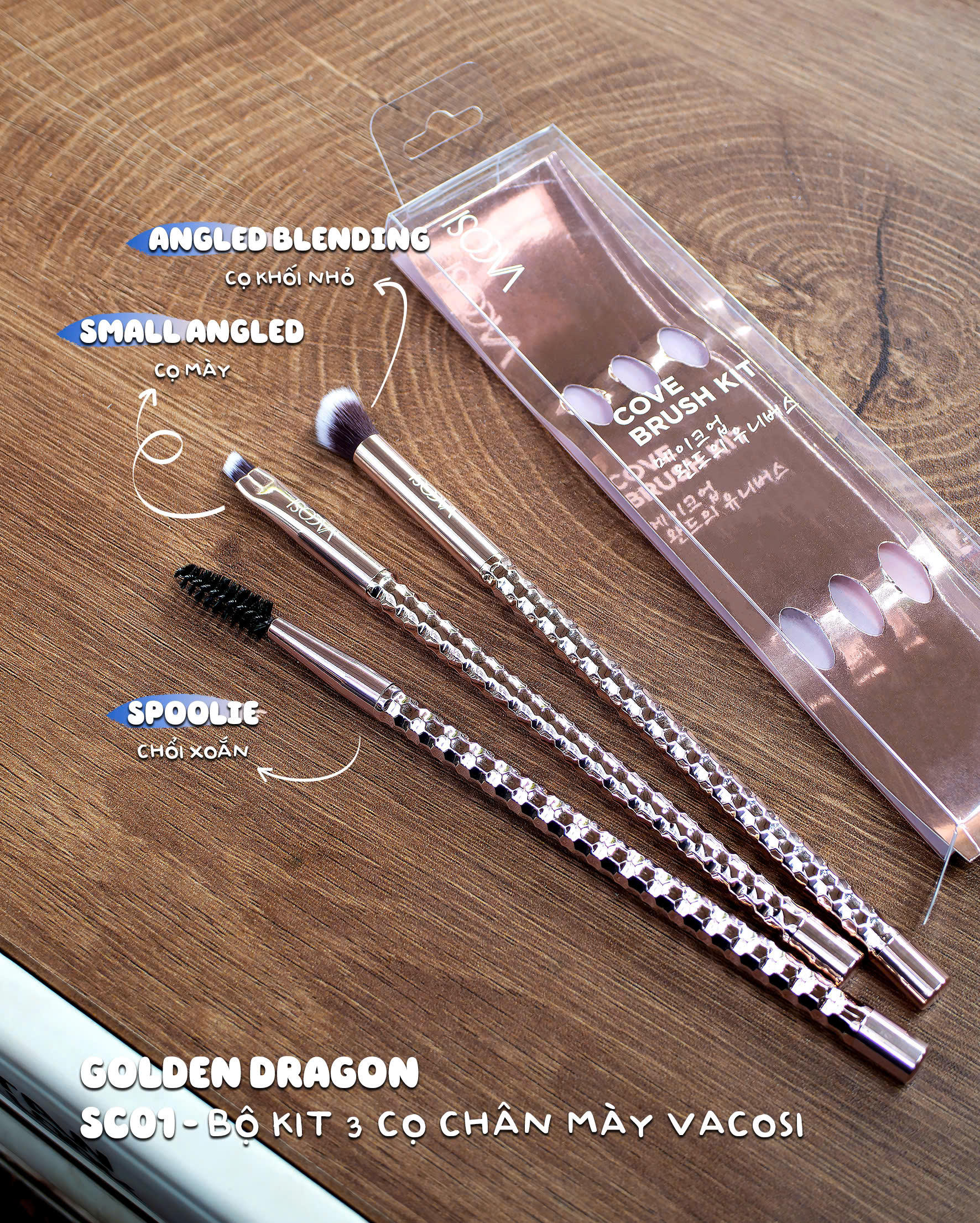 ✨SC01 - BỘ KIT 3 CỌ CHÂN MÀY VACOSI, PHIÊN BẢN GOLDEN DRAGON - VACOSI COVE THE BROWS BRUSH KIT, 3PCS