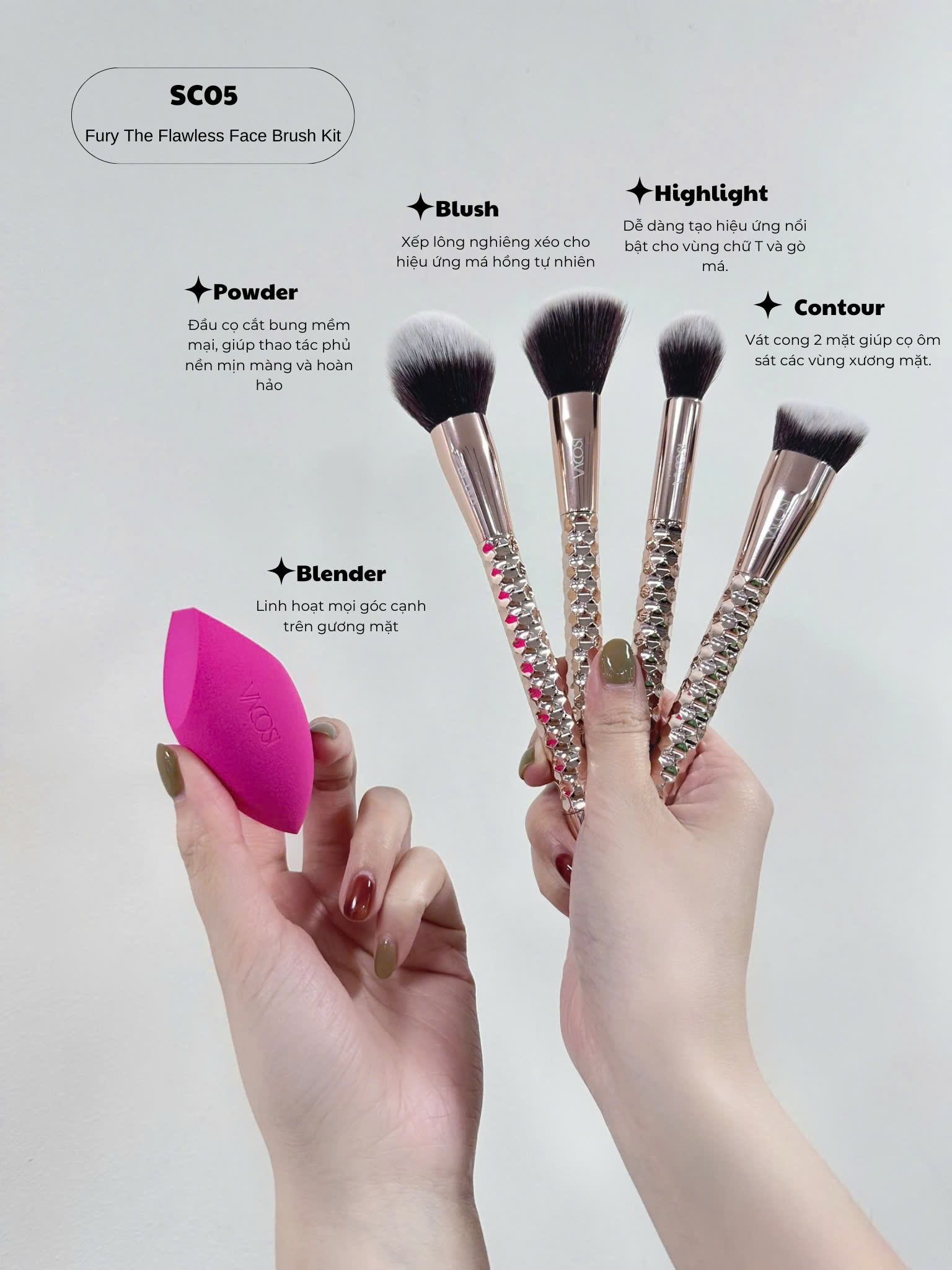 Sử dụng công nghệ ,kết hợp hoàn hảo giữa sợi lông mềm mại và bền chắc. Lông cọ siêu mềm mịn, mang đến cảm giác êm ái, thư giãn khi chạm vào da, an toàn cho cả da nhạy cảm. Bộ cọ mang lại trải nghiệm mượt mà, với thiết kế thân cọ chắc chắc dễ dàng thao tác giúp bạn tự tin bay bổng sáng tạo như một Makeup Artist