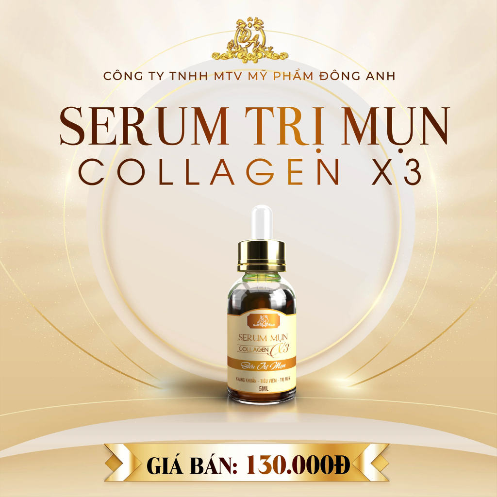 Serum Mụn Collagen X3 Serum Dưỡng Ẩm Kiểm Soát Dầu Nhờn Se Khít Lỗ Chân Lông Đông Anh Chính Hãng 5ml Thông tin thương hiệu Tên sản phẩm : Serum Mụn Collagen X3 Serum Dưỡng
