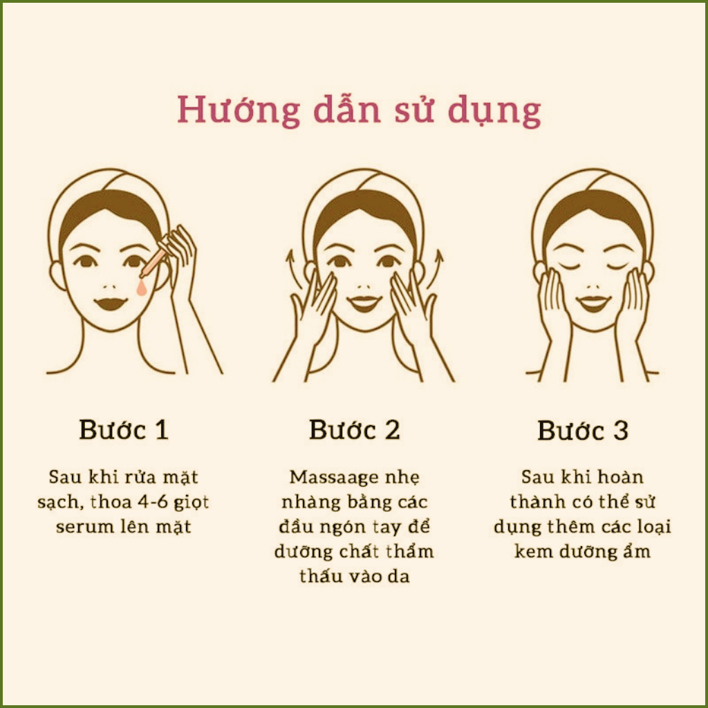 - Serum có dạng lỏng, thẩm thấu vào da nhanh và sâu, không chứa cồn, không chứa parabens và chất tạo mùi.