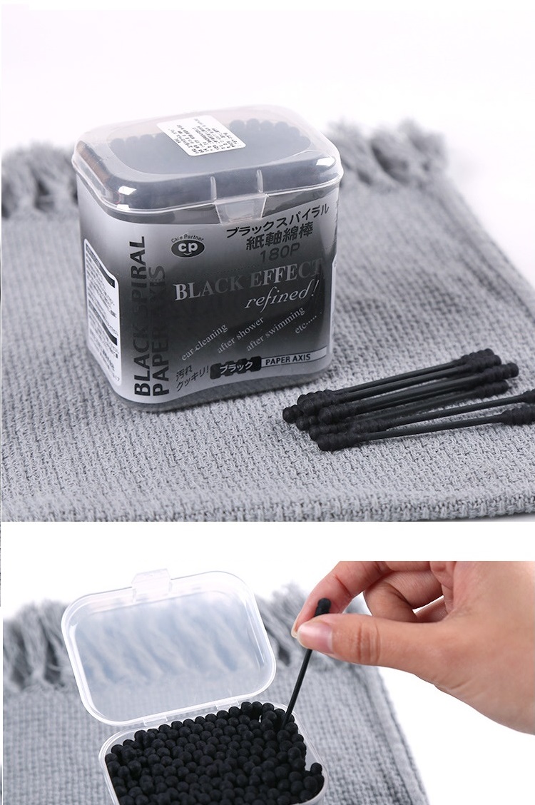 Hộp Bông Trang Điểm 2 Đầu Màu Đen Hồng 200c Tăm Bông Trẻ Em Bông Ngoáy Tai Lấy Ráy Tai Cho Người Lớn