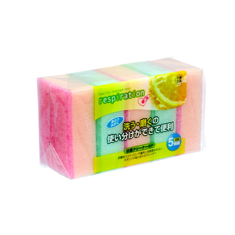 Set 05 miếng mút rửa chén bát, gồm 2 lớp kép giúp đánh bay mọi loại vết bẩn cứng đầu - nội địa Nhật Bản * Chất liệu: Mút, sợi tổng hợp với một mặt