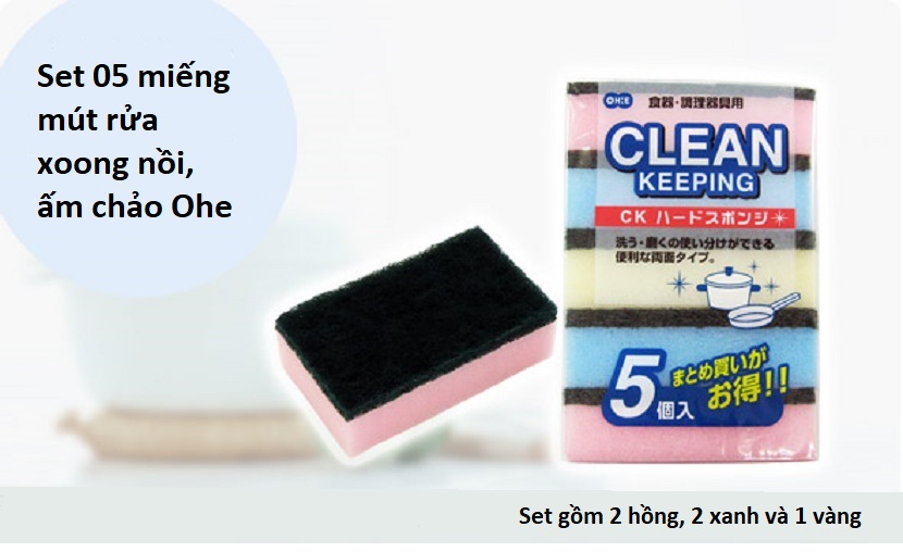 Set 05 miếng mút rửa xoong nồi, ấm chảo Ohe, giúp việc dọn dẹp nhanh chóng và hiệu quả, tiết kiệm chi phí - nội địa Nhật BảnChất liệu: Xốp Polyurethane nguyên sinh, vải nylon không dệt giải pháp cho ...