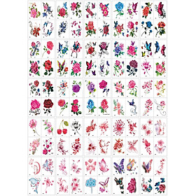 ✨Set 100 tờ hình xăm dán tạm thời hoa hồng cá voi cá heo cô gái thời trang unisex Legaxi