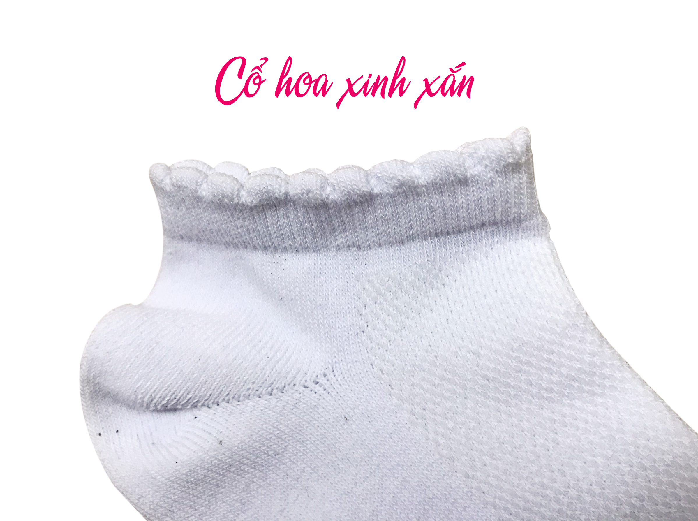 Tất ngắn với chất liệu cotton dày dặn, mềm mại, có khả năng thấm hút mồ hôi nhanh chóng. Tất nữ với các họa tiết đơn giản mà tinh tế, tạo điểm nhấn trẻ trung.