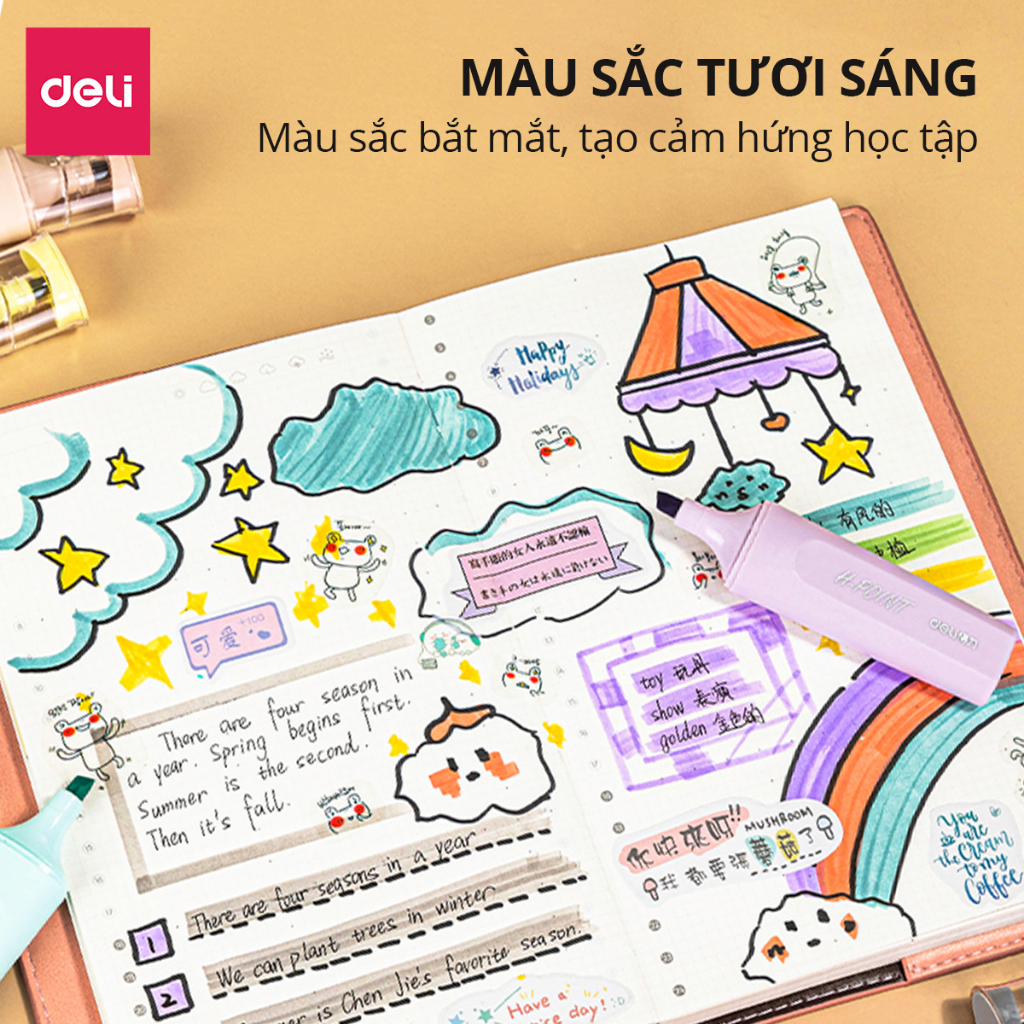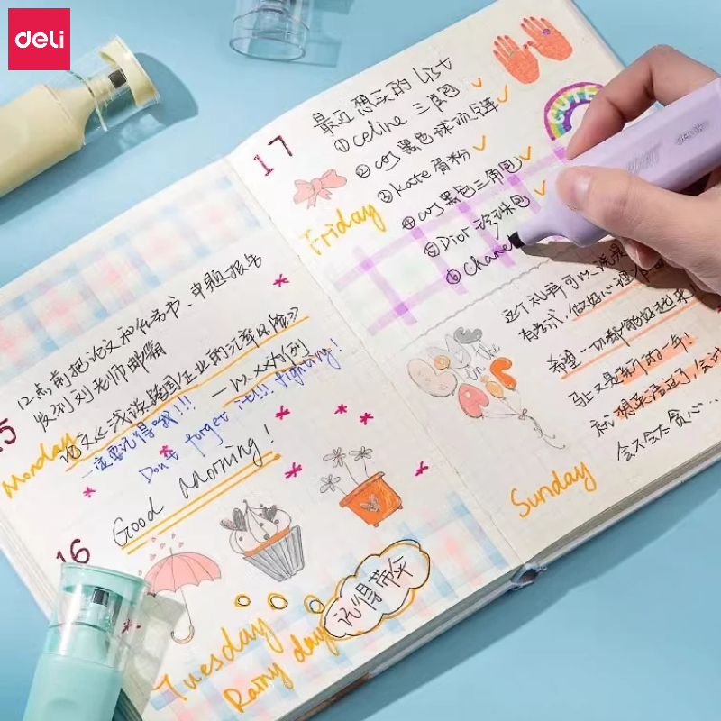 Màu mực tươi sáng hơn Không độc hại Thân bút màu dạ quang trong suốt Sử dụng được cho giấy thường và giấy fax Có thể đánh dấu với khoảng cách hơn 100 m++ Đầu