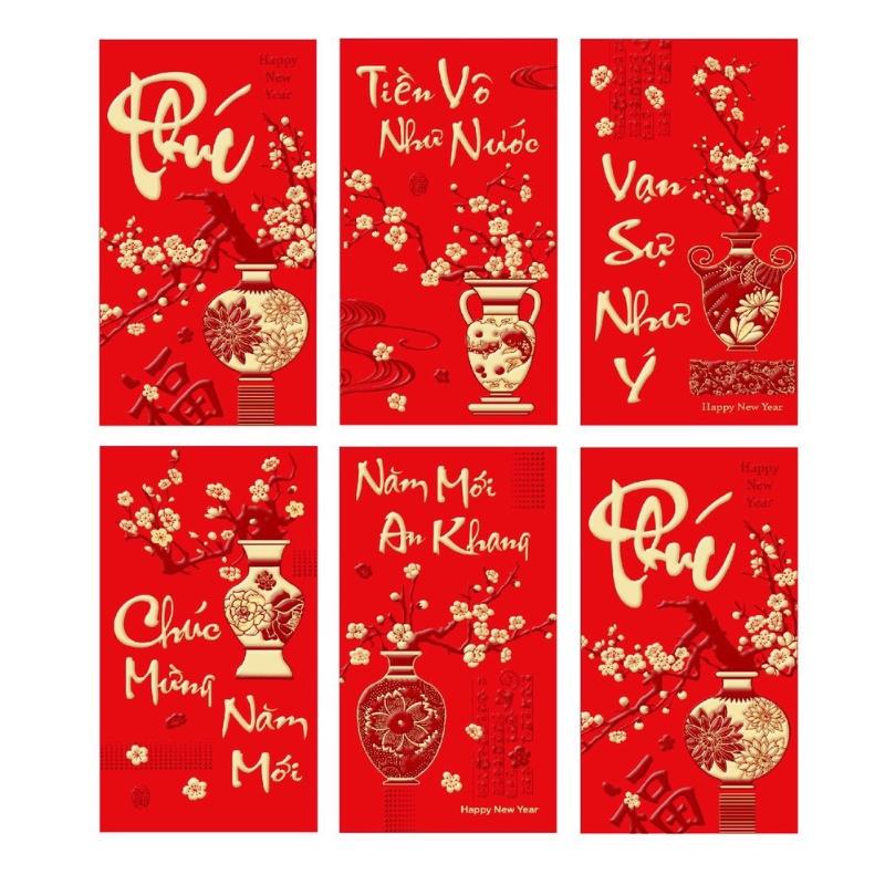 ✨Set 6 phong bao lì xì tết đỏ thắm, chất đẹp, phong cách truyền thống (giao mẫu ngẫu nhiên)