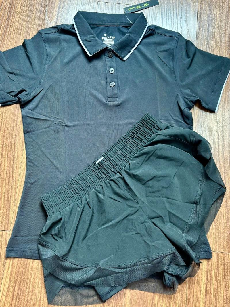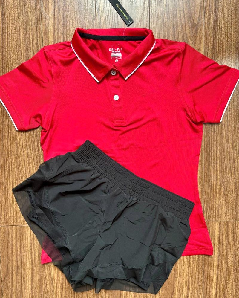 - Quần đùi hàng quảng châu cao cấp Quần có 2 lớp: lớp ngoài là vải polyester, bên trong là lớp thun lạnh co giãn 4 chiều có túi bên hông đựng đồ lặt vặt Quần lưng cao giúp chị em hack vòng 2 cực đỉnh, lên dáng siêu đẹp Quần có 3 màu: Đen, Xanh, Tím 2.Áo có cổ nữ, golf, tennis,chất thun mịn, mát co giãn, chất dày dặn, hình thật Áo thể thao nữ golf, tennis, cầu lông nữ xinh phom chất chuẩn đẹp Thun co giãn 4 chiều Size: M, L, XL, 2XL Màu: Đen, Xanh dạ quang, Đỏ, Cam
