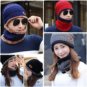 Mũ len kèm khăn ống quàng cổ lót lông dày dặn giữ ấm cho mùa đông