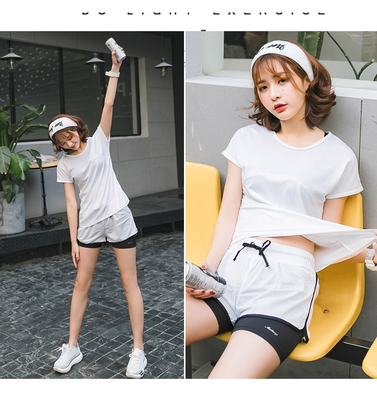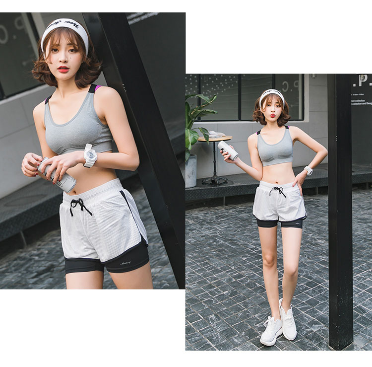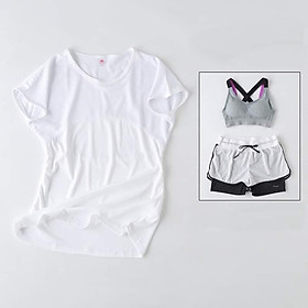 Bộ sản phẩm đầy đủ gồm ( quần đùi 2 lớp + áo thun + áo bra có lót ngực ) Chất liệu Polyester cao cấp có độ bền và co giãn cao Thấm hút