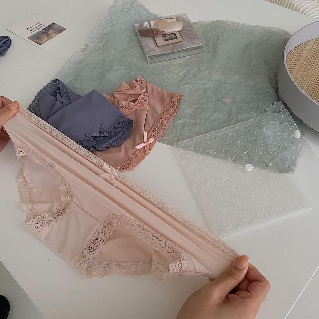 ✨Set túi ví 3 quần lót nữ su lạnh phối nơ viền ren