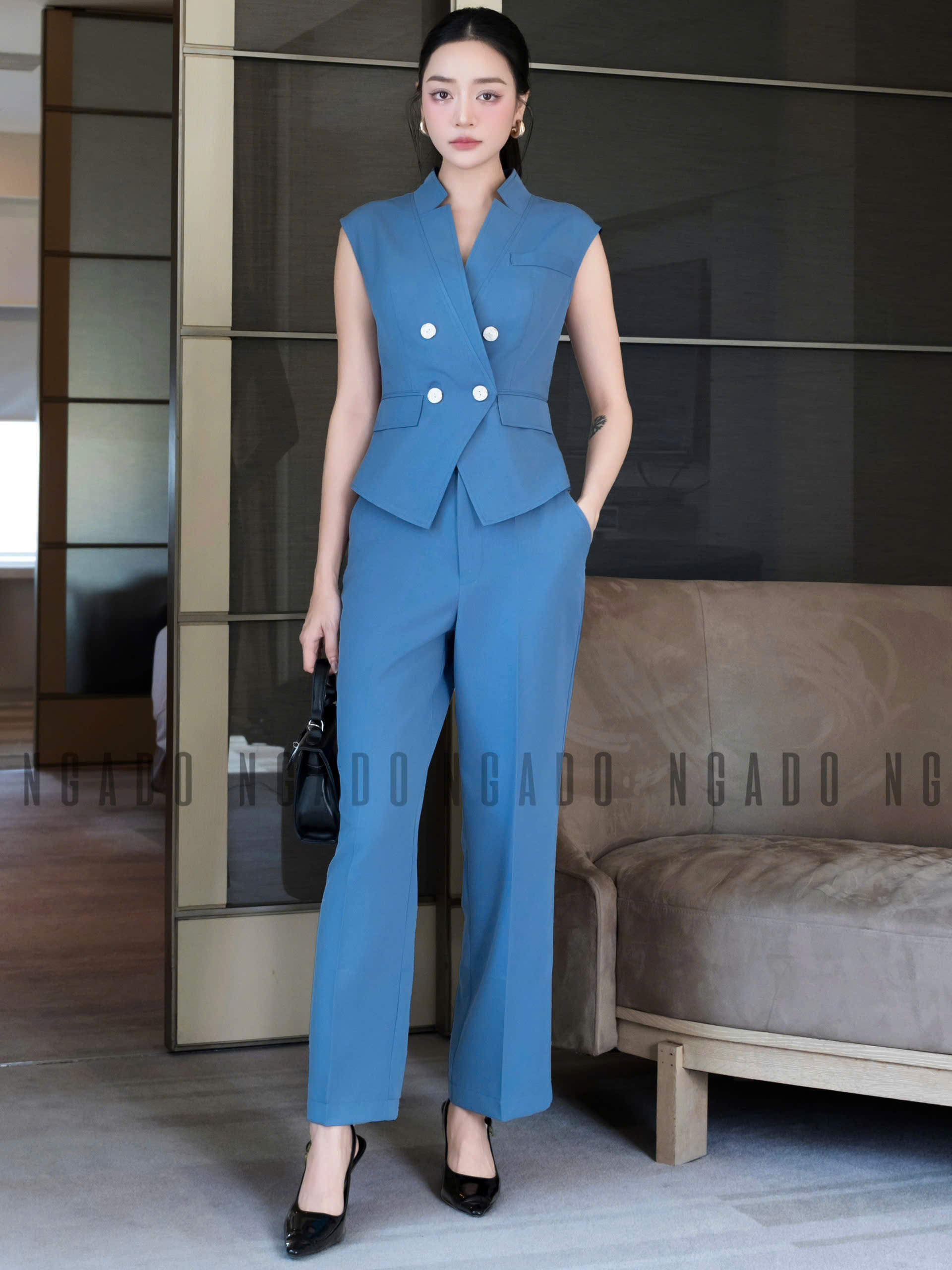 ✨Set vest xanh cổ V NGADO , set áo quần Nữ , set công sở