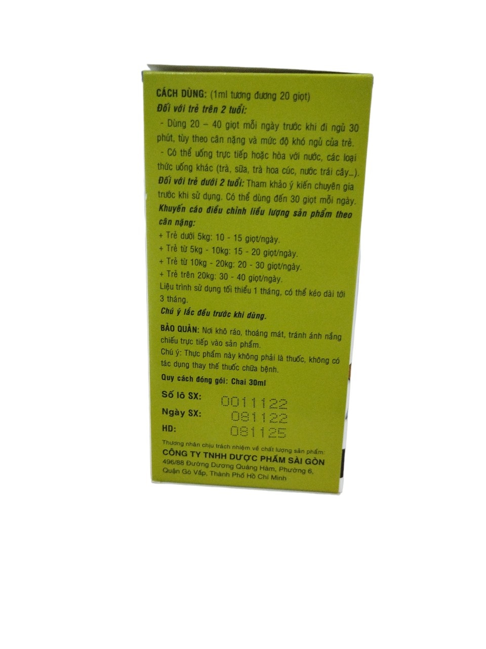 - Dùng 20-40 giọt mỗi ngày trước khi đi ngủ 30 phút, tùy theo cân nặng và mức độ khó ngủ của trẻ.