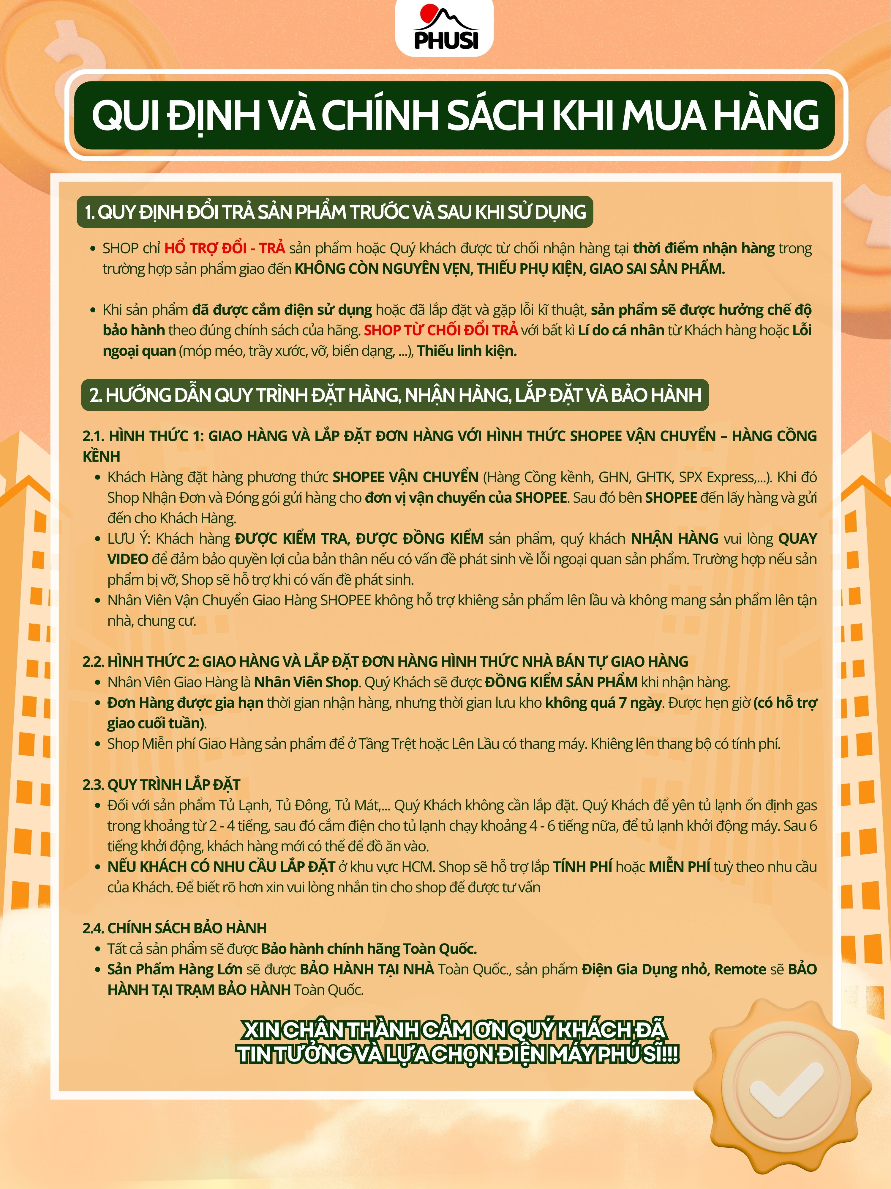 Khu vực ngoại thành HCM có giao hàng tính phí, vui lòng liên hệ trước. * ĐỂ BÀN miễn phí, TREO TƯỜNG có phụ thu phí lắp đặt, khoan tường. * Cần hỗ trợ giao