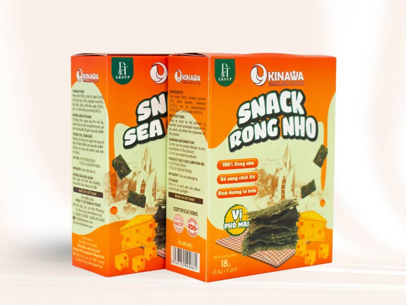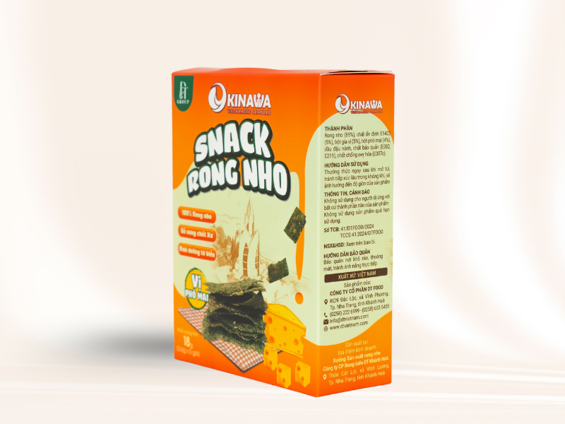 Mua tại Tiktok- Thành phần: Rong nho (85%), bột phô mai (4%), bột gia vị, chất ổn định (E1422), dầu đậu nành, chất bảo quản (E202, E211), chất chống oxy hóa (E307c).