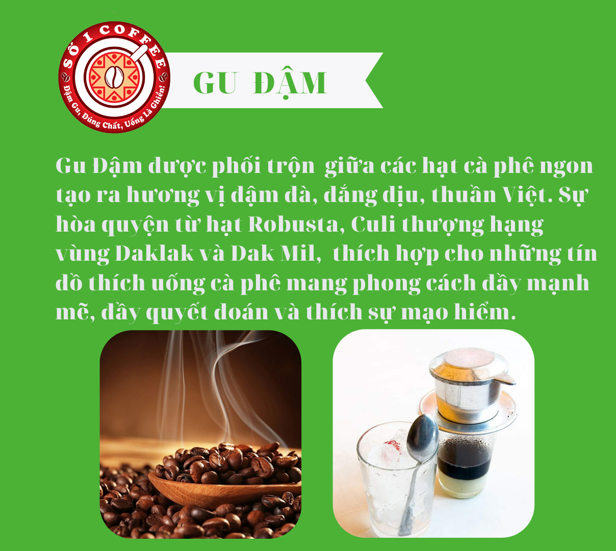 ️ Cà phê Số 1 Coffee Gu Đậm mang hơi hướng trầm tĩnh, vị đậm đà, đắng đặc trưng, hương thơm nồng thích hợp cho những người mang phong cách đầy mạnh mẽ, đầy quyết đoán và thích sự mạo hiểm.