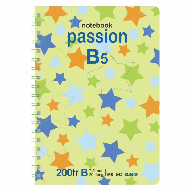 Sổ lò xo kép Klong 200 trang Offset bìa cứng, MS 942 Mã sản phẩm: 942 Định lượng: 70 g/m Độ trắng 76 % ISO Số trang 200 trang Kích thước (175 x 250) mm
