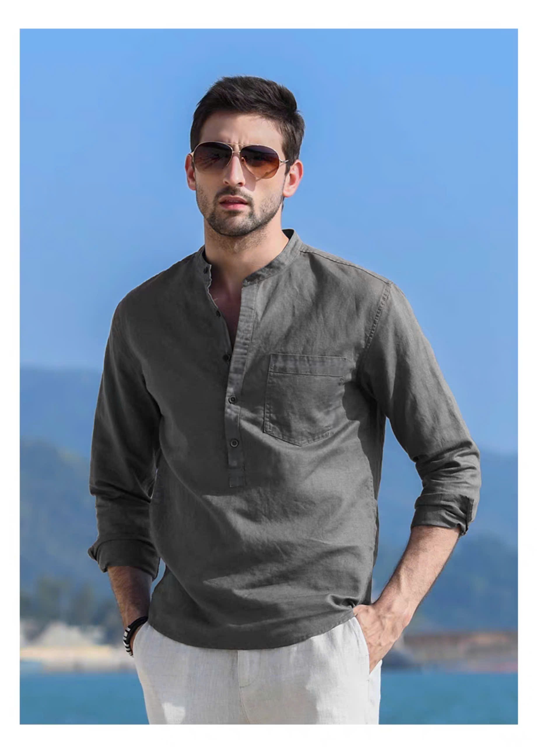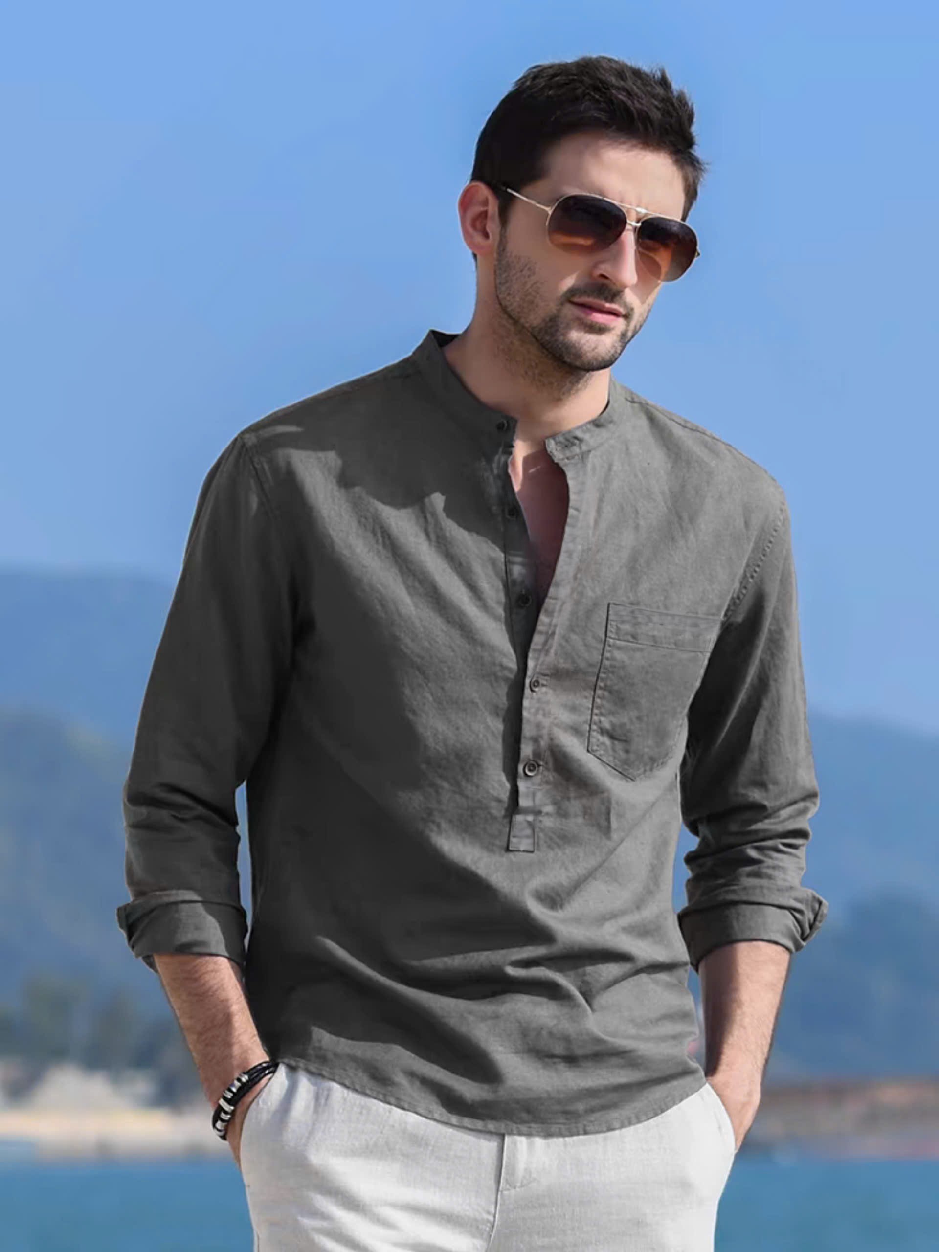 ✨ Sơ mi nam dáng đẹp basic trơn cổ điển, áo sơ mi cổ tàu công sở