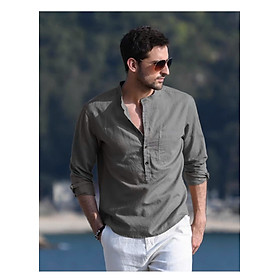 Áo sơ mi nam form rộng cổ tàu cổ trụ tay dài Giấu Nút phong cách hàn quốc trẻ trung lịch lãm-MRDT02 - ÁO SƠ MI NAM RỘNG TAY DÀI mặc rộng thoải mát, mát
