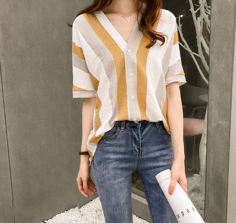 Loại sản phẩm:Áo Sơ Mi Nữ Màu Trắng Ngắn Tay Sọc Vàng Mẫu FR02 Thời Trang Nữ PONIVA Chất Vải Mềm Mịn, Tạo Cảm Giác Thoải Mái Khi Mặc Đặc điểm nổi bật: Áo Sơ