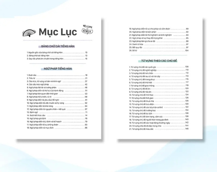 • Phần 4: Mẫu câu thông dụng theo chủ đề. Ngoài ra trong cuốn sách này các tác giả đã thêm phần phiên âm, phần tiếng Việt và kèm file ghi âm giúp người học dễ dàng hơn trong việc tự học tiếng Hàn.. Tự học tiếng Hàn giúp bạn không bị gò bó bởi thời gian, giúp bạn thoải mái hơn nhưng nó cũng có thể khiến bạn dễ dàng bỏ cuộc. Vì vậy, tác giả cuốn sách này với mục đích tạo động lực cho các bạn và giúp các bạn không bị lúng túng khi học tiếng Hàn.
