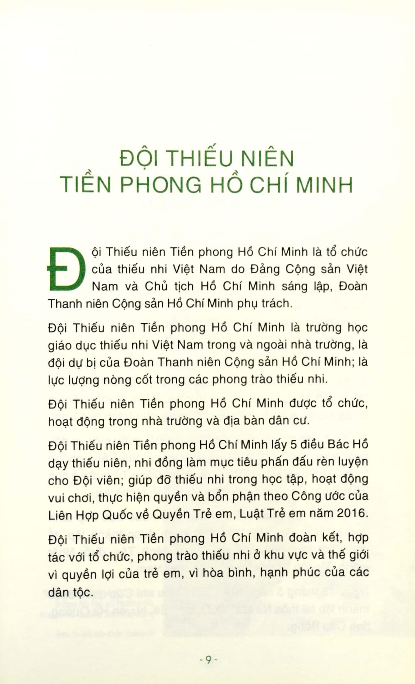 Sách trang bị những kỹ năng cần thiết cho đội viên thiếu niên tiền phong Hồ Chí Minh: những vấn đề chung về tổ chức Đội: lịch sử hình thành, phát triển; những biểu trưng, quy định, kỹ năng đội viên; Những bài hát dùng trong sinh hoạt Đội; Những kỹ năng thực hành xã hội cần thiết của người đội viên.