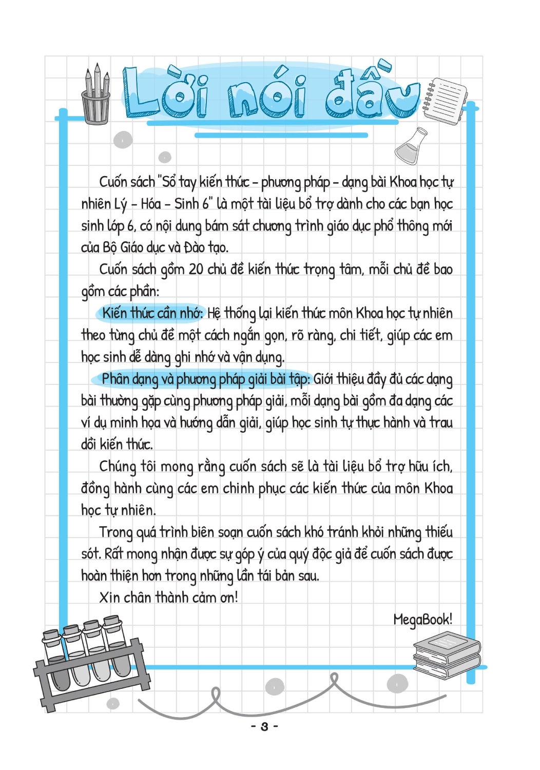 "Sổ tay kiến thức - phương pháp - dạng bài Khoa học tự nhiên Lý - Hóa - Sinh" là tài liệu bổ ích dành cho học sinh lớp 7, bám sát chương trình giáo dục phổ thông mới. Cuốn sách giúp các em nắm vững kiến thức Khoa học tự nhiên theo từng chủ đề với cách trình bày ngắn gọn, rõ ràng và dễ hiểu. Các dạng bài tập thường gặp được giới thiệu chi tiết, kèm theo phương pháp giải cụ thể và nhiều ví dụ minh họa sinh động. Với cuốn sổ tay này, học sinh không chỉ ôn tập hiệu quả mà còn tự tin vận dụng kiến thức vào thực tế.