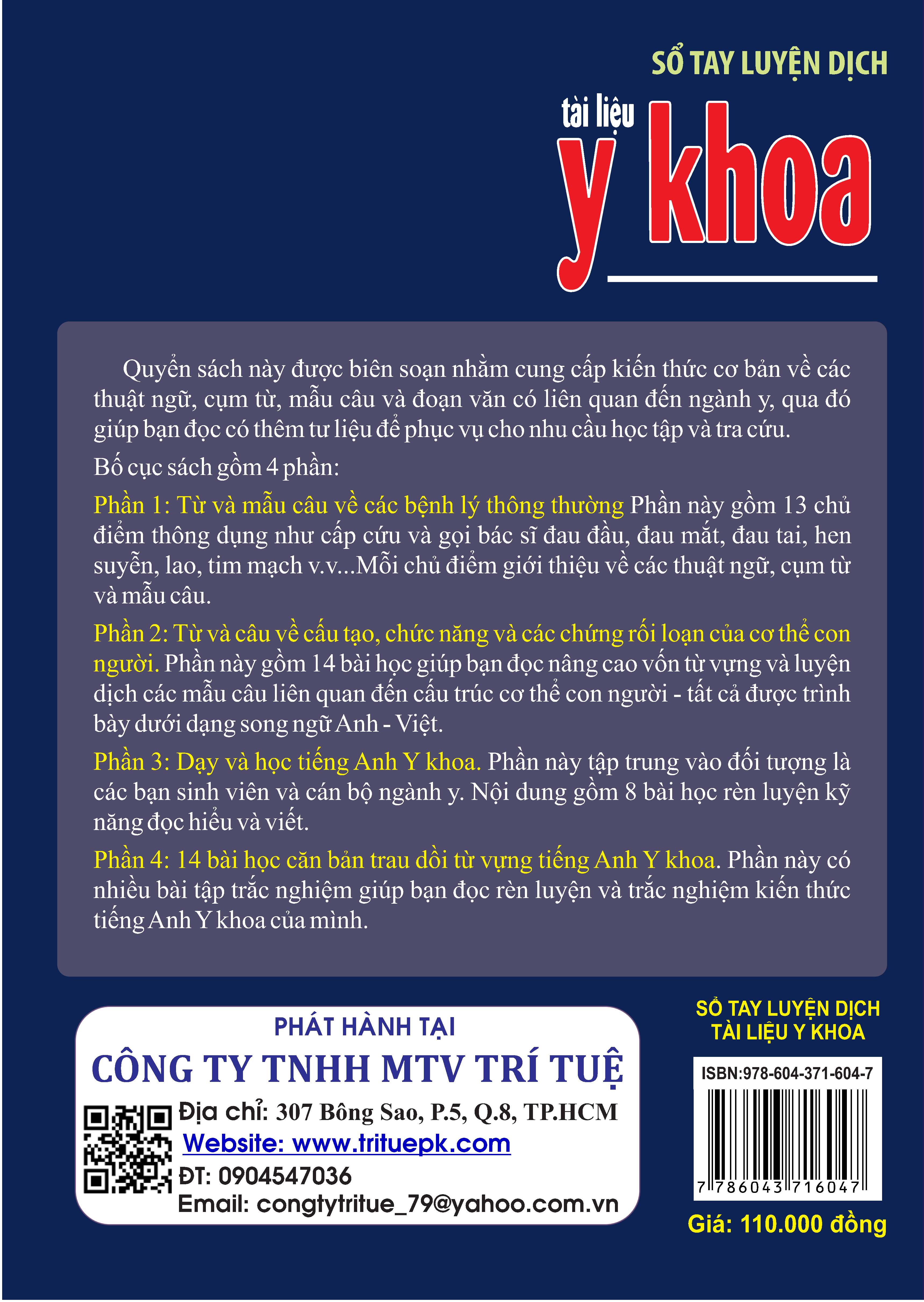 Sổ tay Luyện dịch tài liệu Y khoa Quyển sách này được biên soạn nhằm cung cấp kiến thức cơ bản về các thuật ngữ, cụm từ, mẫu câu và đoạn văn có liên quan