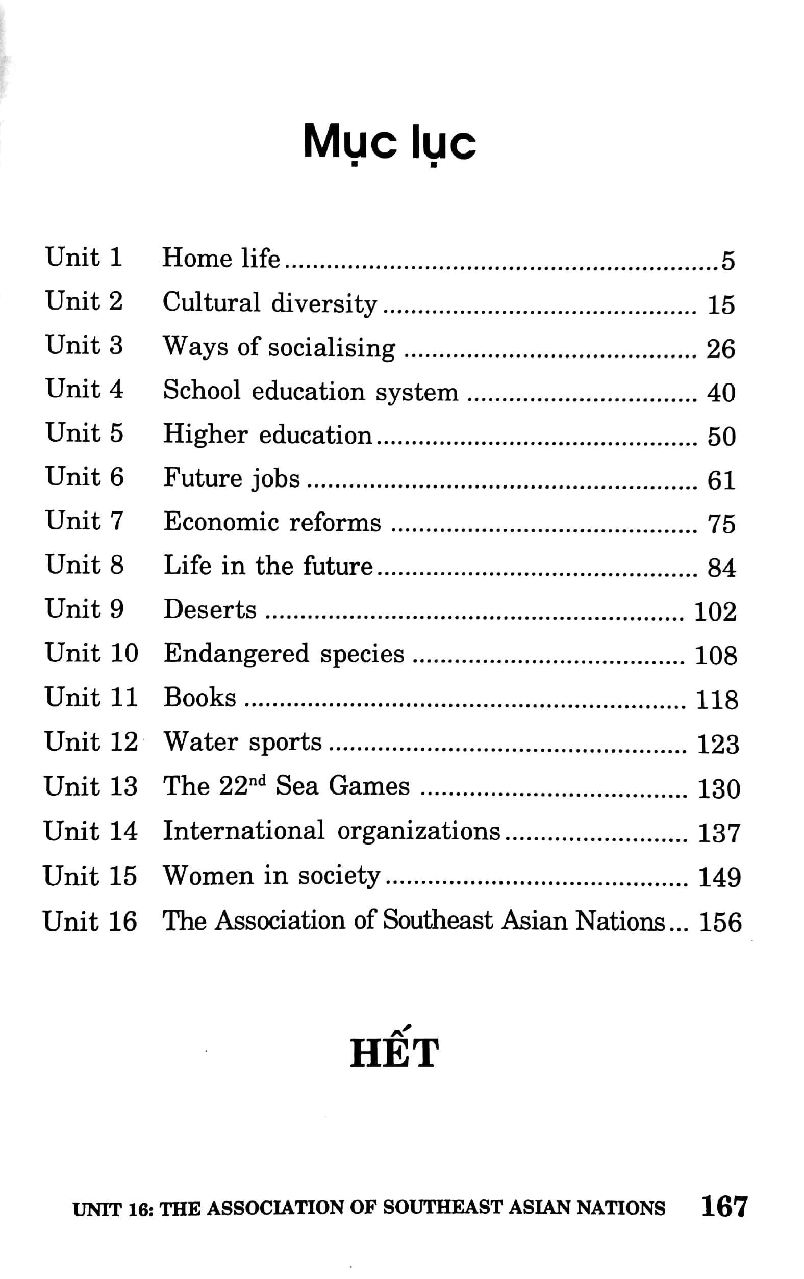 Mua tại TiktokMỗi đơn vị bài học gồm: Glossary (bảng từ vựng), Grammar (ngữ pháp), Sentence patterns (mẫu câu).