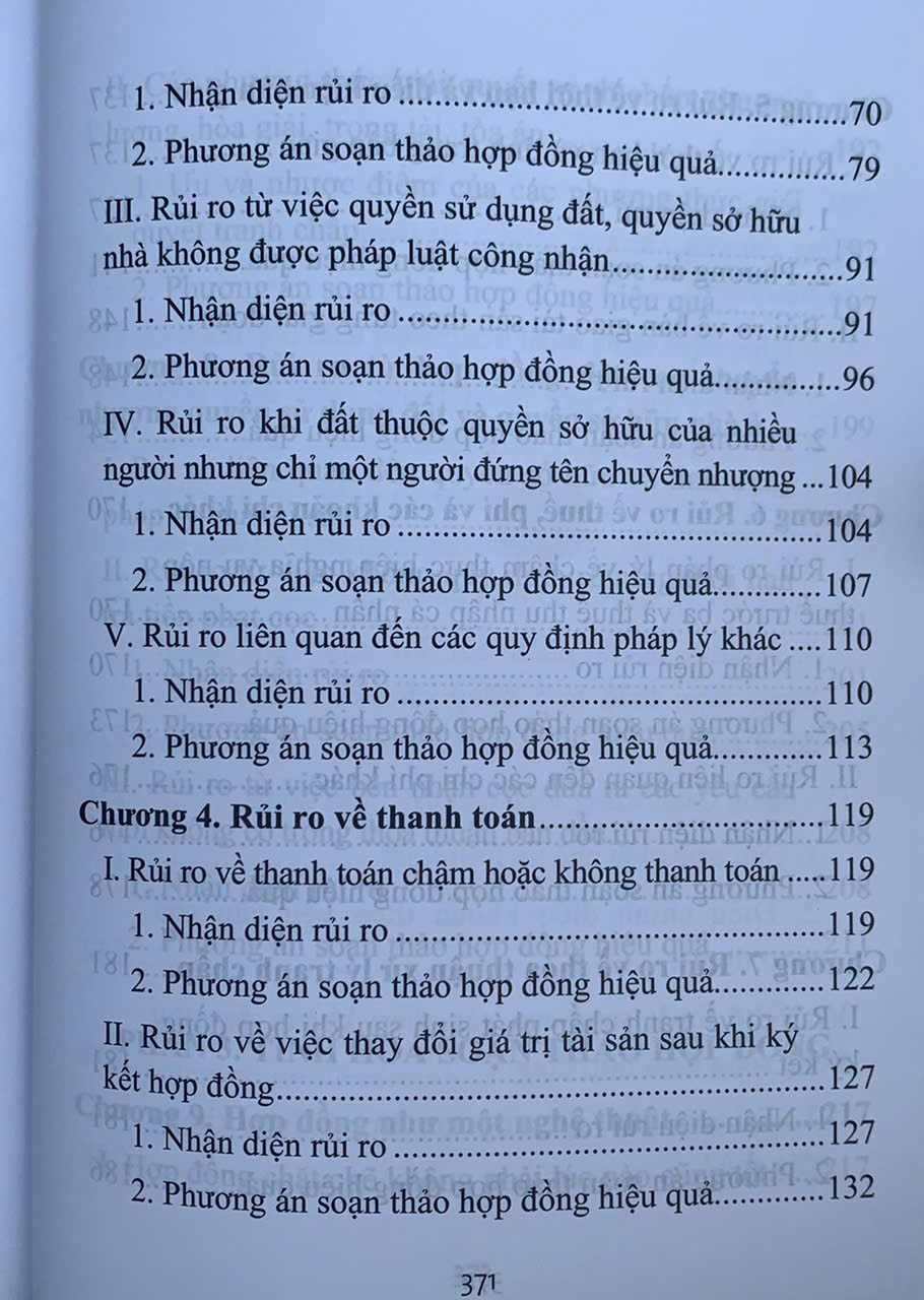 Phần thứ hai tập trung vào việc phân tích chi tiết các rủi ro pháp lý có thể gặp phải trong các điều khoản hợp đồng và đề xuất những phương án soạn thảo hiệu quả.