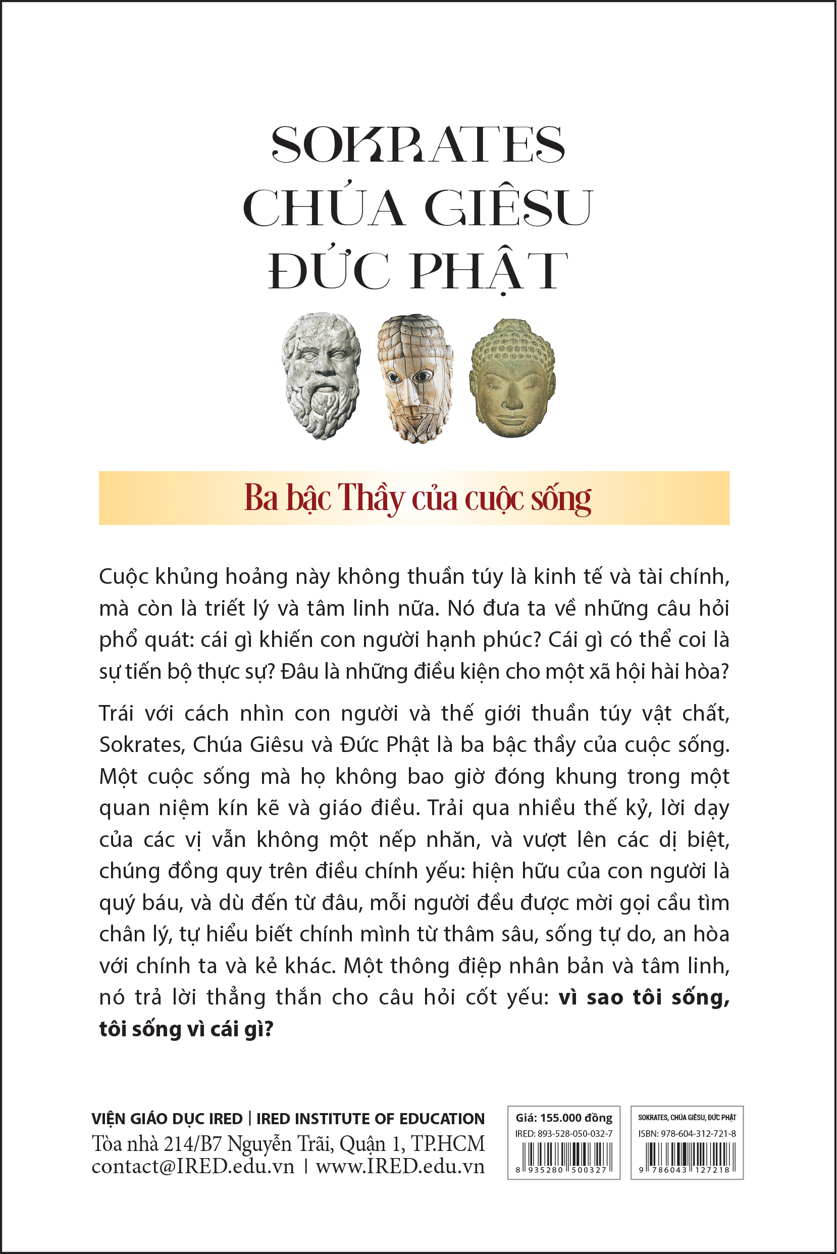 Trái với cách nhìn con người và thế giới thuần túy vật chất, Sokrates, Chúa Giêsu và Đức Phật là ba bậc thầy của cuộc sống. Một cuộc sống mà họ không bao giờ đóng khung trong một quan niệm kín kẽ và giáo điều. Trải qua nhiều thế kỷ, lời dạy của các vị vẫn không một nếp nhăn, và vượt lên các dị biệt, chúng đồng quy trên điều chính yếu: hiện hữu của con người là quý báu, và dù đến từ đâu, mỗi người đều được mời gọi cầu tìm chân lý, tự hiểu biết chính mình từ hâm sâu, sống tự do, an hòa với chính ta và kẻ khác. Một thông điệp nhân bản và tâm linh, nó trả lời thẳng thắn cho câu hỏi cốt yếu: vì sao tôi sống, tôi sống vì cái gì?