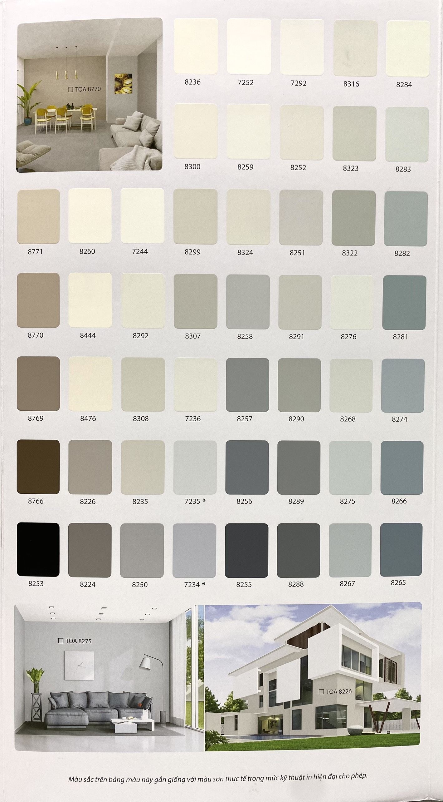 - Màu sắc: Nhiều màu Theo bảng màu và quạt màu TOA