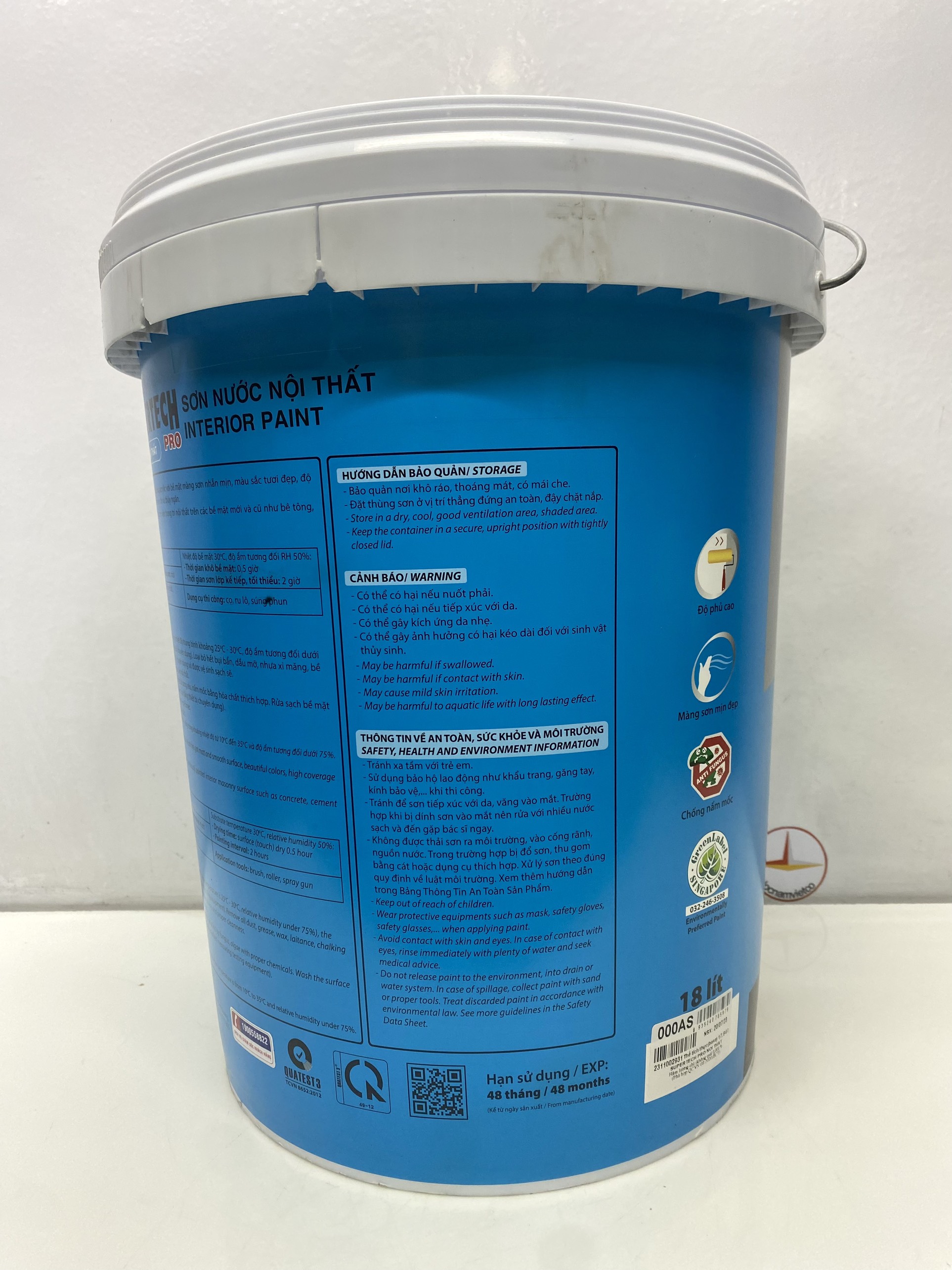- Không chứa APEO và Phoóc-môn, Chì và chất độc hại MỤC ĐÍCH SỬ DỤNG: Sơn Nước Toa Supertech thích hợp cho việc trang trí nội thất trên các bề mặt mới và cũ như bê tông, tường xi măng, bê tông, thạch cao, gạch, ngói, tấm xi măng nhẹ, v.v... ĐẶC TÍNH SẢN PHẨM: