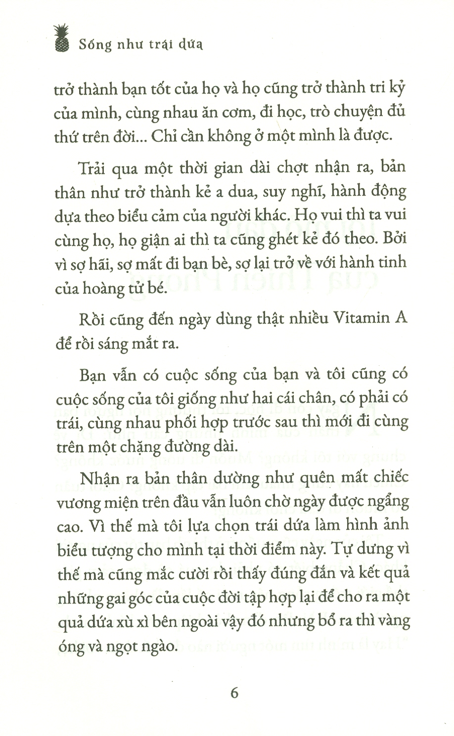 Hãy sống như trái dứa:Đầu đội vương miện,dáng đứng hiên ngang, bên ngoài gai góc,bên trong ngọt ngào