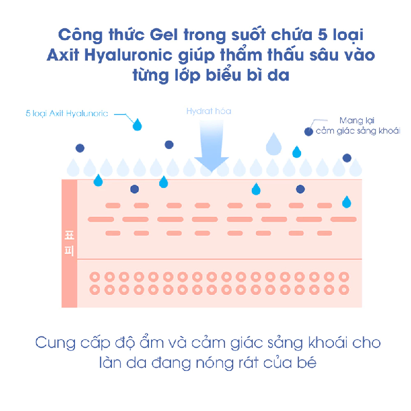 Công thức gel trong suốt với 5 loại axit hyaluronic, cung cấp độ ẩm sâu.