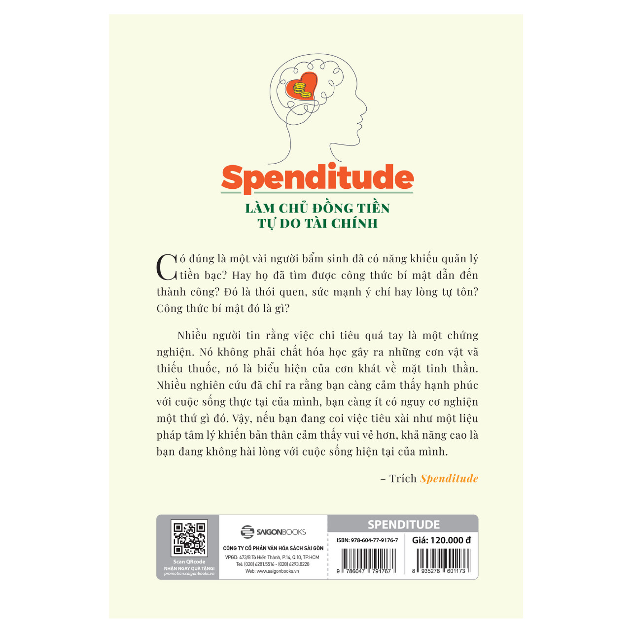 Spenditude: Làm Chủ Đồng Tiền, Tự Do Tài Chính ------------ Tác giả Janine Robertson , Paul Gordon Công ty phát hành Saigon Books Mã sản phẩm 8935278601173 Nhà xuất bản NXB Thế Giới Kích