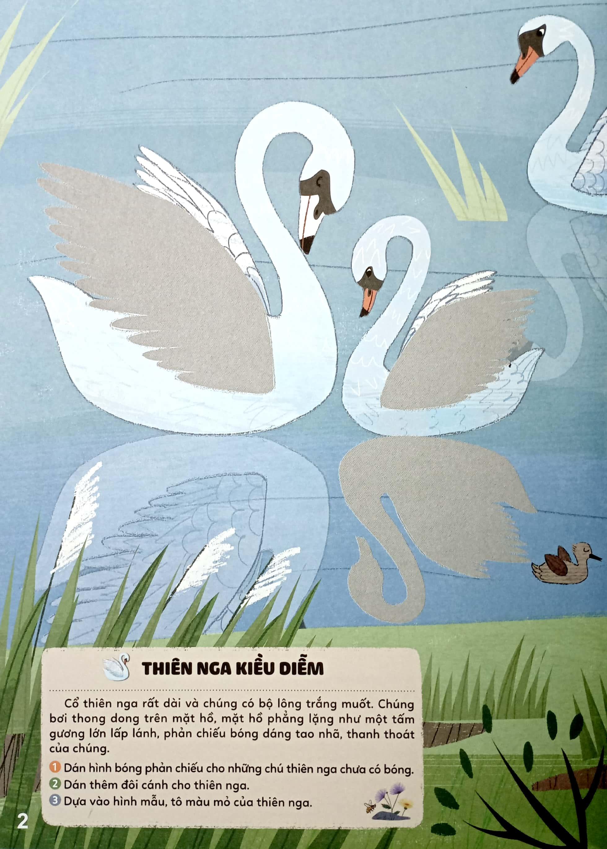 Hình ảnh các loài động vật sinh động và đáng yêu khiến các bé say mê thiên nhiên từ nhỏ. Cuốn sách gồm 300 hình dán cùng 100 bức tô màu giúp các bạn nhỏ vừa học vừa chơi, dễ dàng nhận biết. Từ đó rèn luyện khả năng quan sát, trí tưởng tượng, óc sáng tạo và khả năng thực hành. Với những câu đố vui, cha mẹ có thể thu hoạch kiến thức cùng các con.